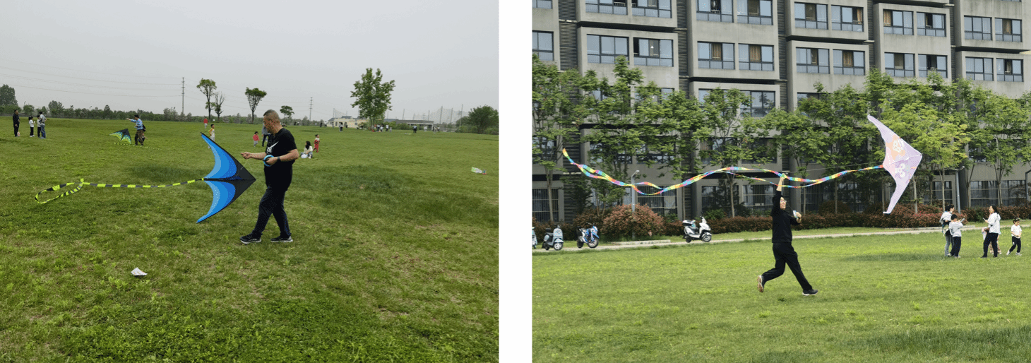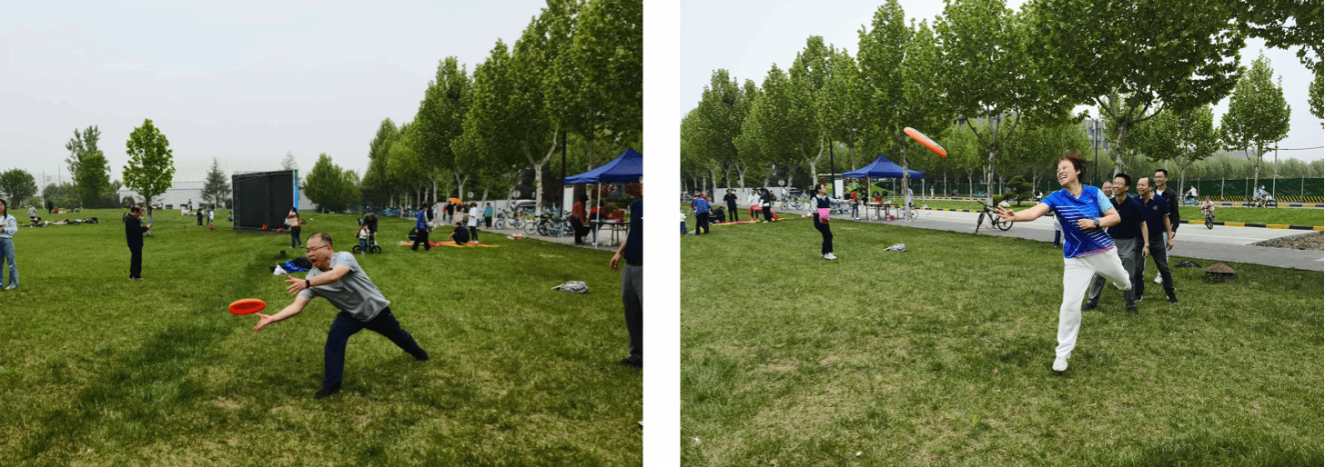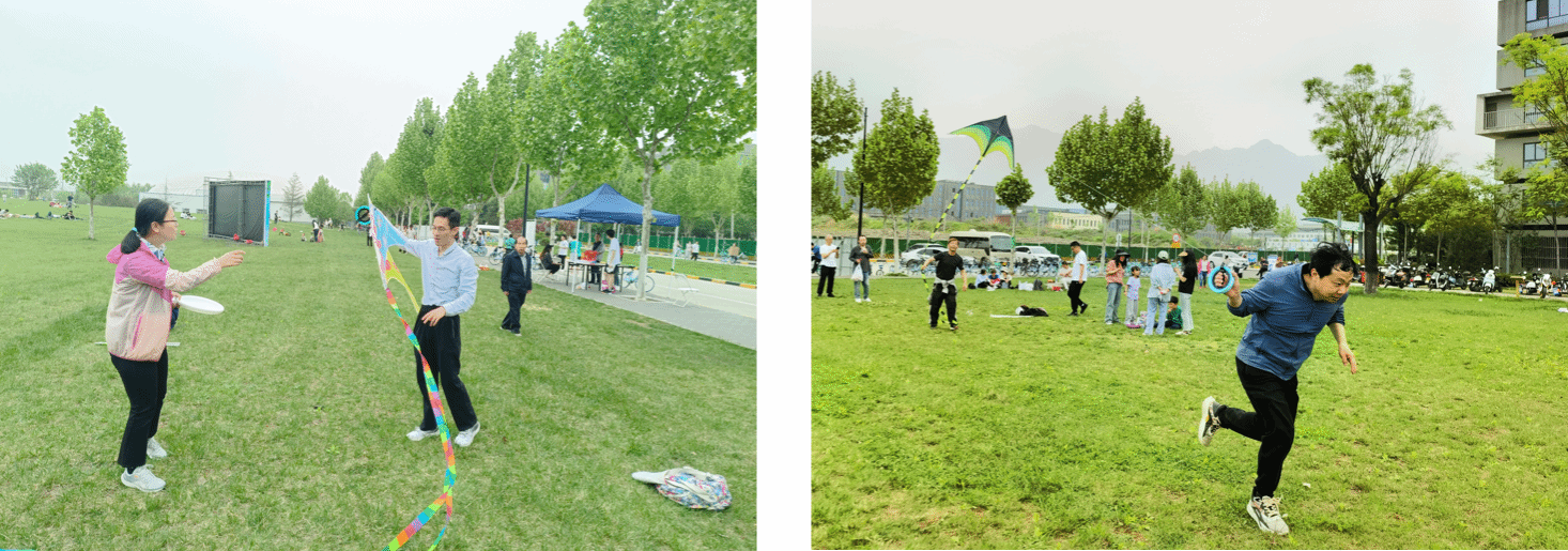 骑行活动结束后,学院工会购置了一批风筝和飞盘,组织了飞盘接力比赛和放风筝比赛,在比赛过程中,大家奋力奔跑,欢乐不断,玩得不亦乐乎。游乐活动激发了大家对飞盘运动和风筝活动的热爱,也增强了彼此间的互动交流以及团队合作。