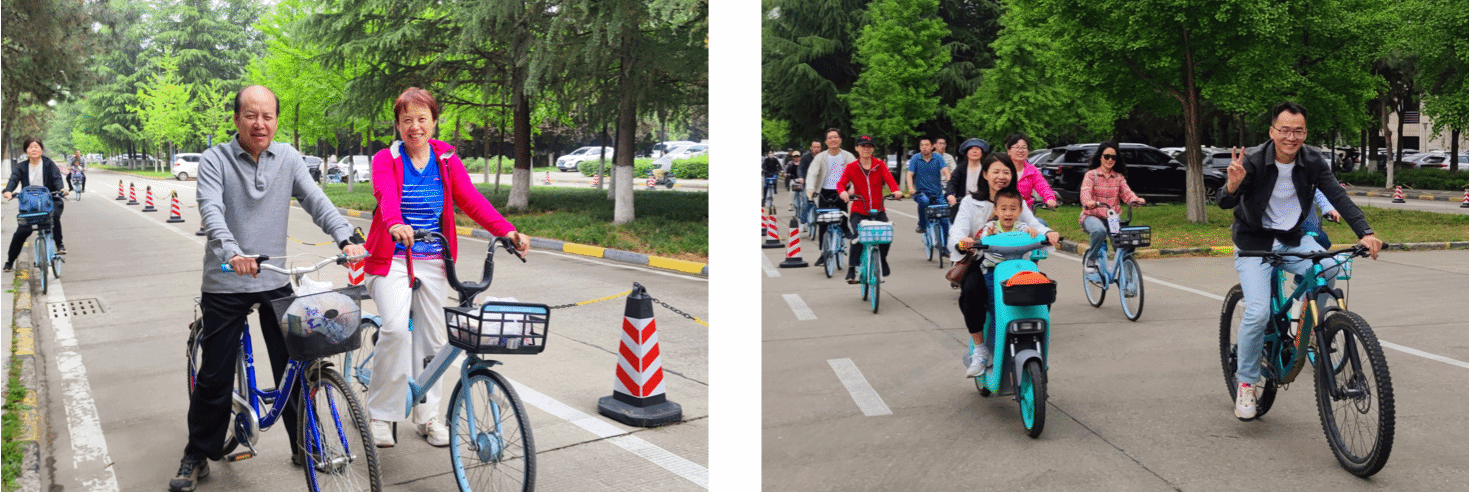 随着一声令下,大家从“新”出发,沿着学校安排的路线开始骑行。有的教职工极速前行,你追我赶;有的教职工慢慢骑行,三五成群,欢声笑语;有的教职工骑骑停停,用镜头定格美好,珍藏春季的绚烂与浪漫;有的教职工更是全家总动员,带着孩子,呈现出一副其乐融融的景象。特别是学院国家级人才宋笔锋双职工、国家级人才周洲、国家级人才张伟伟双职工、国家级人才郗恒东双职工等,以及学院一些资深教授,海内外引进的航空新力量的准聘青年教师,积极参加了此次活动。