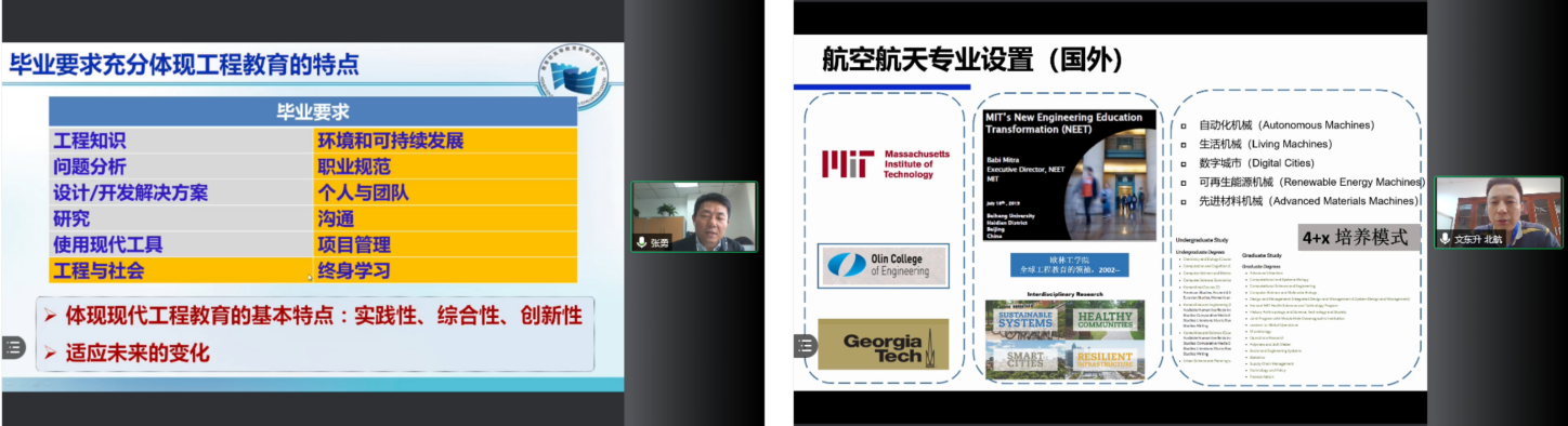 论坛聚焦“工程教育认证”、“教育国际化”、“新工科建设背景下拔尖创新人才培养改革”、“科教融合”、“产教融合”、“课程思政”等主题,十分契合当前时代需要。论坛邀请7位嘉宾进行主题邀请报告。教育部高等教育教学评估中心办公室张勇作题为“聚焦学习产出,推动工程专业人才培养质量提升”的邀请报告,北京航空航天大学国际交叉科学研究院院长文东升教授作了题为“国际化拔尖人才培养的思考“的邀请报告,中国空间技术研究院副总师果琳丽研究员的邀请报告为“瞄准前沿、以赛促学--企业大学的研究生课程教学实践”,清华大学航空航天学院副院长宝音贺西教授的报告介绍了“清华大学航空航天工程本科教育教学”。电子科技大学beats365官网院长李辉教授作了《新工科背景下一流专业建设》报告,四川大学空天科学与工程学院副院长黄崇湘教授以“空天报国、思政为核”为中心介绍了《川大航空航天创新人才培养体系探索与实践》。最后,beats365官网院长邓子辰教授作了题为“西北工业大学航宇学科拔尖人才培养探索”报告,着重介绍了黄玉珊航空班的系列特色化做法。