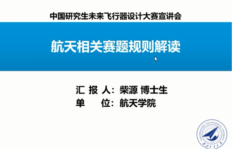 接下来是大赛规则解读部分,首先袁昌盛老师进行了航空相关赛题规则解读。袁老师从大赛主题开始分析切入航空飞行器总体及分系统设计,提供了飞行器总体设计上一些开放想法,之后又从大赛报告写作简洁、重点突出、语言恰当、排版美观等方面分享了自己的经验。