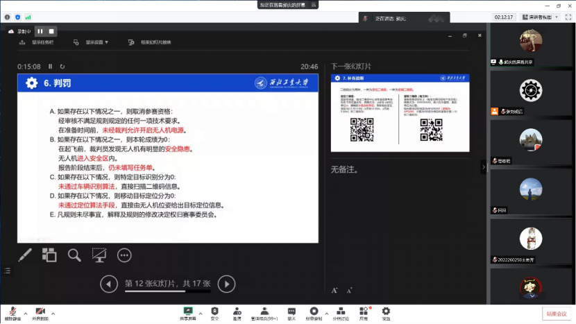 最后郭庆老师进行了挑战赛道赛题规则解读。郭老师详细解读了室内无人机协同识别追踪的比赛规则,尤其对分数计算的部分详细举例说明,讲解通俗易懂。同时,郭老师还提醒同学们挑战赛道的注意事项,强调规则的重要性。解读的最后给出了自己的建议和思路参考,为同学们提供了很好的借鉴。