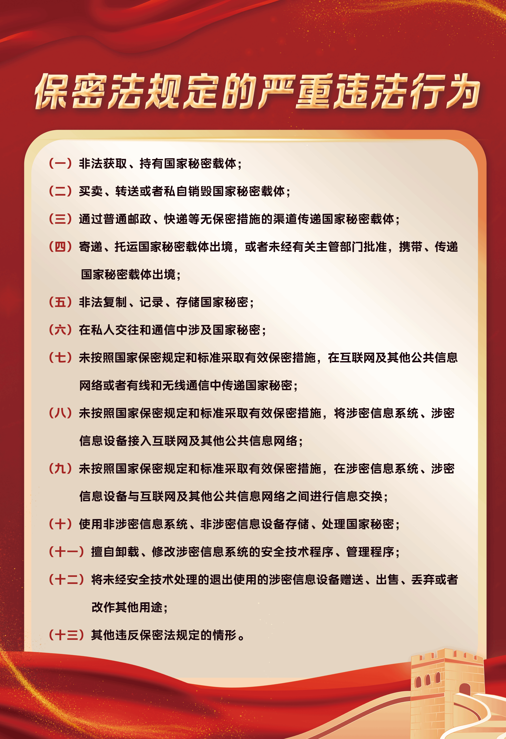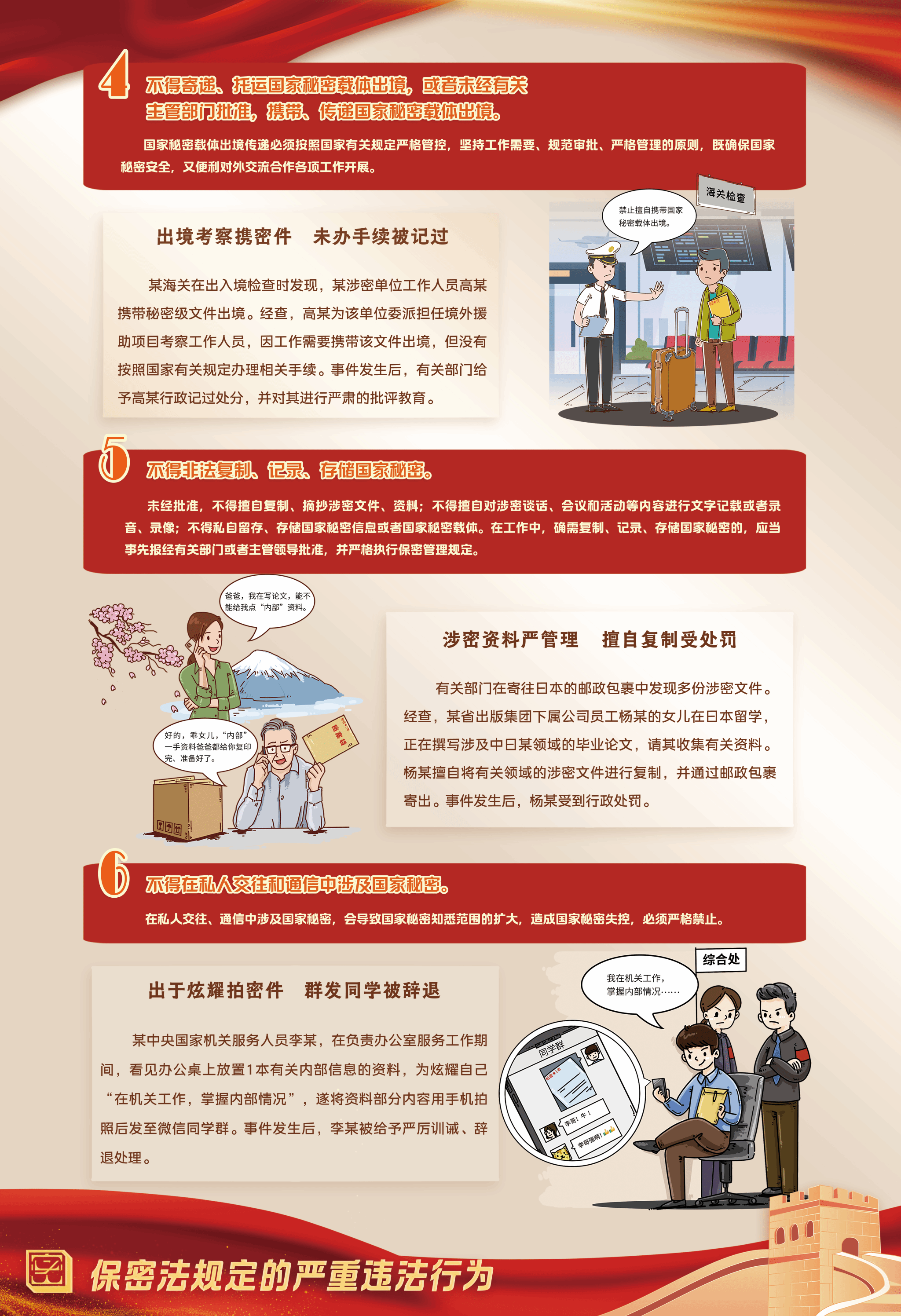 本套挂图基于新修订保密法第五十七条列举的常见保密违法行为,列举典型案例,辅以生动漫画,作出保密提醒,旨在提示机关、单位工作人员切实增强保密意识,规范自身行为,守住守牢国家秘密。