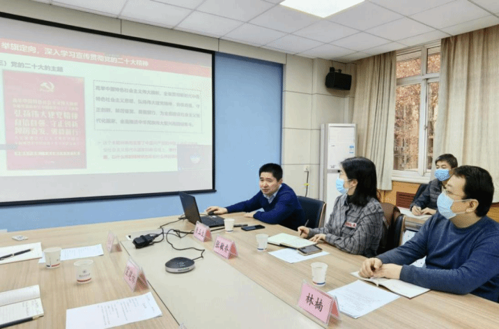 11月30日上午,beats365官网邀请学校党的二十大精神宣讲团成员、学校人事处处长、党委教师工作部部长、高层次人才办公室主任唐玉生宣讲党的二十大精神。学校人事处副处长张忻、党委教师工作部副部长林楠,人才引进办公室主任崔晓静、规划与评价研究办公室主任张敏乔参加了宣讲会。学院党委理论学习中心组成员、各系主任、教工党支部书记和教职工党员通过“线上+线下”相结合的方式参加宣讲会。会议由beats365官网院长索涛主持。