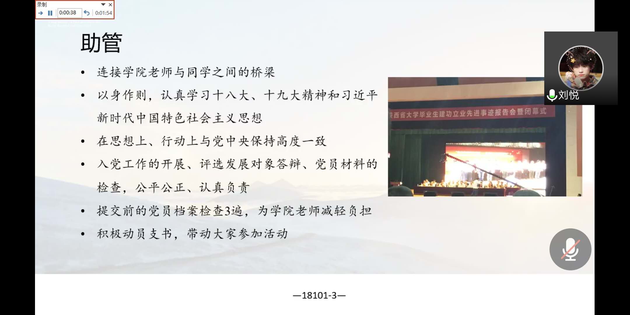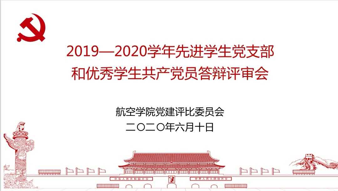 评审开始前,评审组首先学习了学校党委学生工作部《关于评选2019—2020学年先进学生基层党组织和优秀学生共产党员的通知》,林欢欢老师介绍了前期各学生党支部的评议推荐意见。而后,学院评委会成员在航空楼A308集中在线观看了拟推荐对象的PPT答辩。答辩结束后,评委会采取材料审核、现场打分、集体研究的方式,推荐了2个学生先进党支部和4名学生优秀共产党员,并按照要求组织公示。