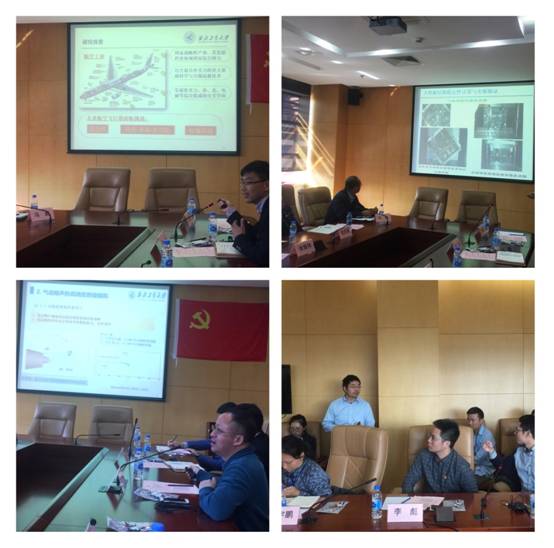 随后,双方展开学术交流研讨。青年教师聚焦上飞院关注的民机等技术问题,结合个人研究方向及成果,逐一进行了学术汇报,并围绕复合材料结构优化设计、超材料承载/降噪一体化、气动噪声高精度模拟与快速预测等内容进行了充分的探讨和交流。