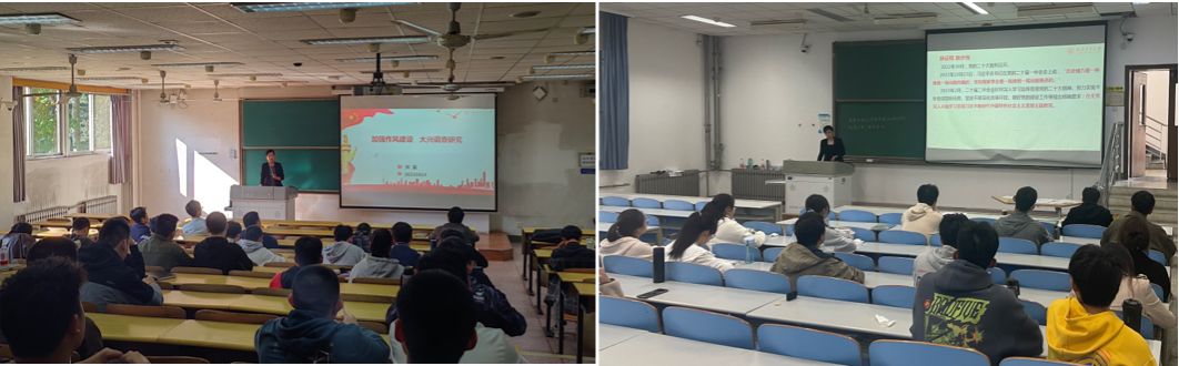 许涛涛老师围绕党的二十大精神,从“党内法规的历史沿革”“党内法规的内容”“新时代党内法规制度建设的必要性”三个层面出发,用一个个生动的历史典例,深入浅出地向同学们讲述了党的二十大对于党章修改决议案的精神,并带领同学们回溯了党内法规的历史渊源,使同学们深刻认识到党章以及党内法规鲜明的规范引领与价值导向作用。
