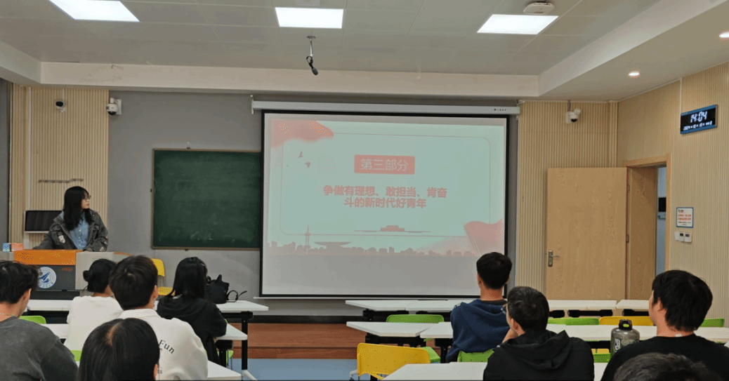 在班长晏帅与团支书束琳琰的引导下,班会带领同学们回顾了新中国成立以来的辉煌历程,展示了新时代中国在科技创新、脱贫攻坚、全面建成小康社会等方面取得的卓越成就。活动特别设置了分组讨论环节,由组织委员刘一童引导,引用李大钊等革命先驱的语录,鼓励同学们以史为镜、志存高远,共同探讨新时代青年如何勇敢肩负历史使命。班级班委将班级同学们分为小组,探讨如何争做有理想、敢担当、肯奋斗的新时代好青年,营造了积极热烈的氛围,引导同学们思考自己未来的发展方向和目标,鼓励大家为实现中华民族伟大复兴的中国梦贡献自己的力量。