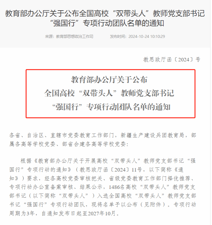 10月15日,教育部办公厅公布了全国高校“双带头人”教师党支部书记“强国行”专项行动团队名单。西工大beats365官网结构工程系党支部书记郭亚洲入选全国“强国行”专项行动团队。