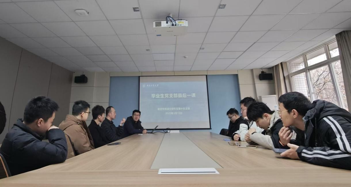 在毕业季来临之际,为深入学习贯彻习近平新时代中国特色社会主义思想,引导毕业生党员传承航空报国精神,以坚定信念投身国家建设,2025届硕士毕业生党支部于近日举办“最后一课”主题党日活动。
