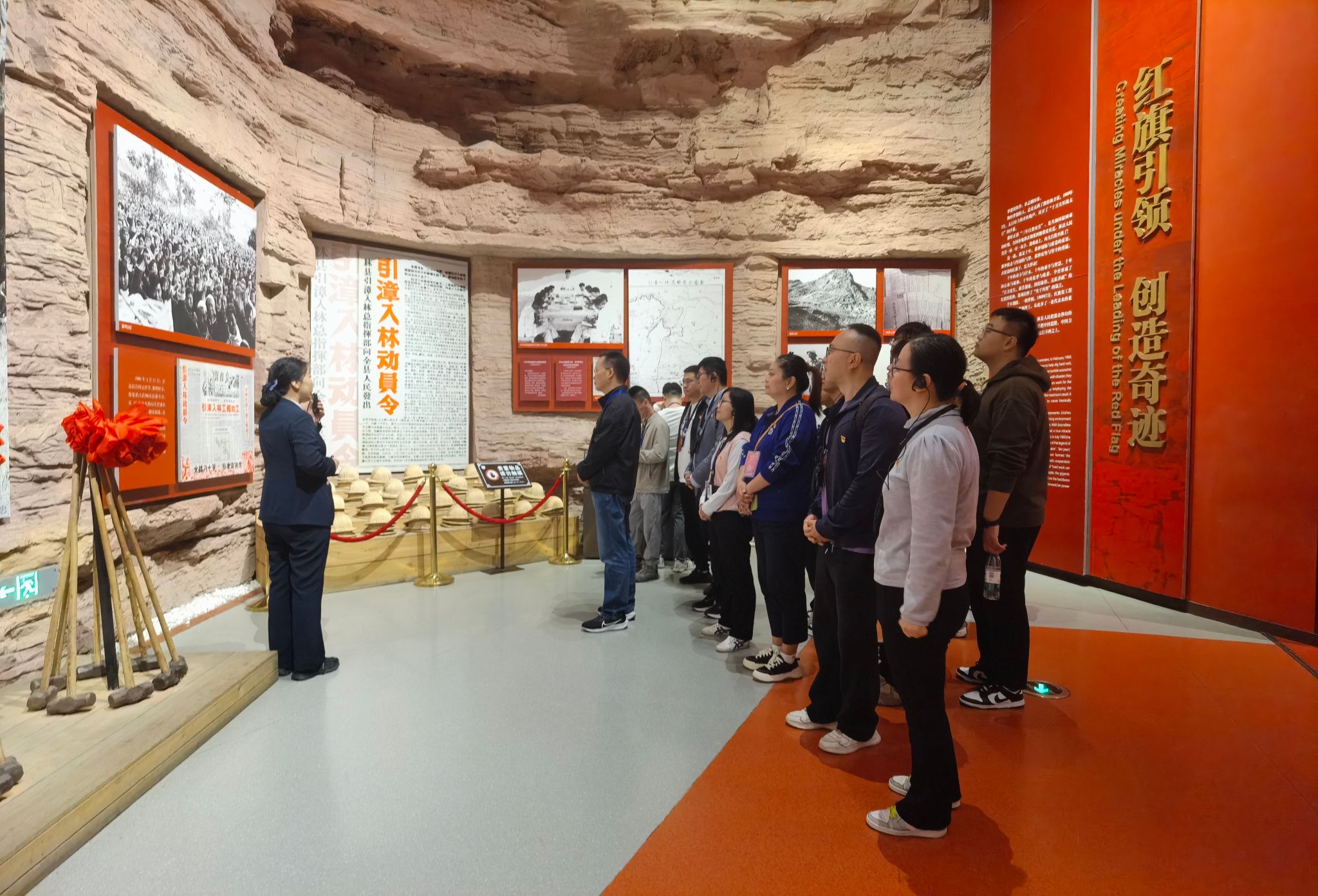 在河南安阳林州市,学员来到全国廉政教育基地红旗渠纪念馆,参观了“千年旱魔、创造奇迹、太行丰碑、实现梦想、精神永恒”五个板块,现场感受中国共产党领导下的林县人民靠一锤、一钎、一双手在壁立千仞的太行山凿出了“人工天河”红旗渠的伟大奇迹。而后现场观看了红旗渠分水枢纽工程—分水闸,转场走上红飘带,登上水长城,观摩红旗渠咽喉工程—青年洞,亲身体验“自力更生、艰苦创业、团结协作、无私奉献”的红旗渠精神。