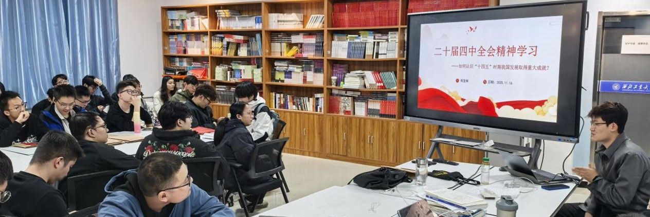 2025年11月16日,西北工业大学硕士研究生第六党支部联合学生廉洁教育研习社、2420108、2420109、2420110团支部,于友谊校区7号楼一楼思创空间开展了一场意义深刻的党日,共同学习党的二十届四中全会精神,共计80余名同学齐聚一堂,积极参与其中。