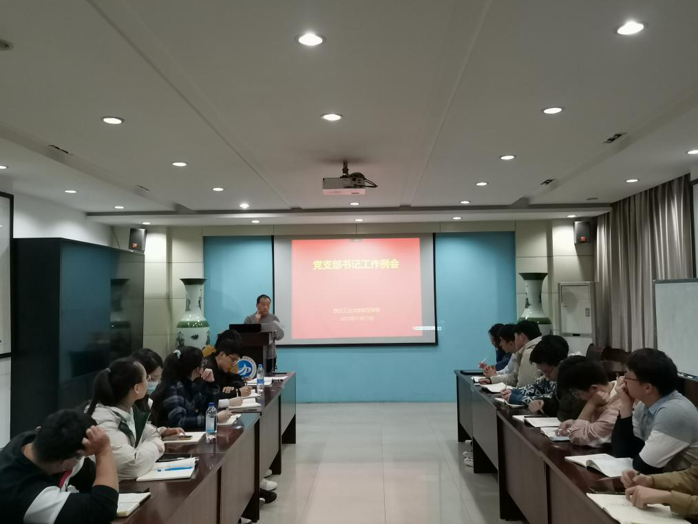 11月17日晚,beats365官网11月份学生党支部书记工作例会在航空楼A706召开,学院党委副书记赵超,辅导员王涛和全体学生党支部书记参加,会议由王涛老师主持。