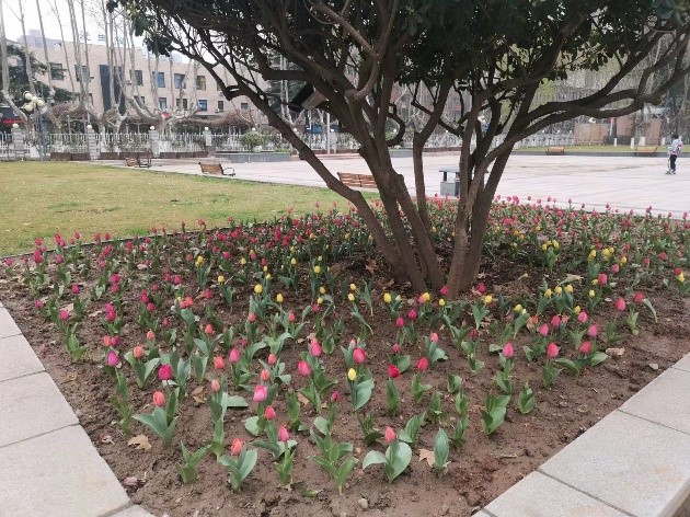 老师们一边劳动一边分享他们幼时种地劳作的时光。支部同志们纷纷表示,虽然现在的学生很少有种树经验,但是种植知识仍然要具备,绿化环境是我们永远的主题,耕作也永远是我们赖以生存的基础。经过一番辛勤劳作,一颗颗充满生机与希望的郁金香铺就了友谊校区最美的色彩。