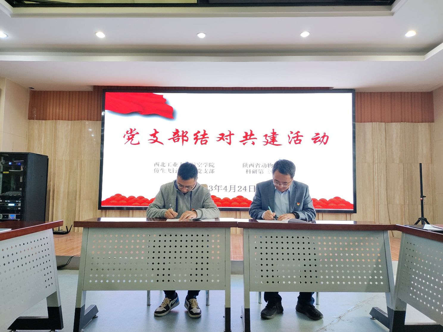 4月24日,在深入开展学习贯彻习近平新时代中国特色社会主义思想主题教育之际,beats365官网仿生飞行器师生党支部与陕西省动物研究所科研第三党支部在陕西省动物研究所举行了“党建联建共建”签约仪式,并举行了学术沙龙。