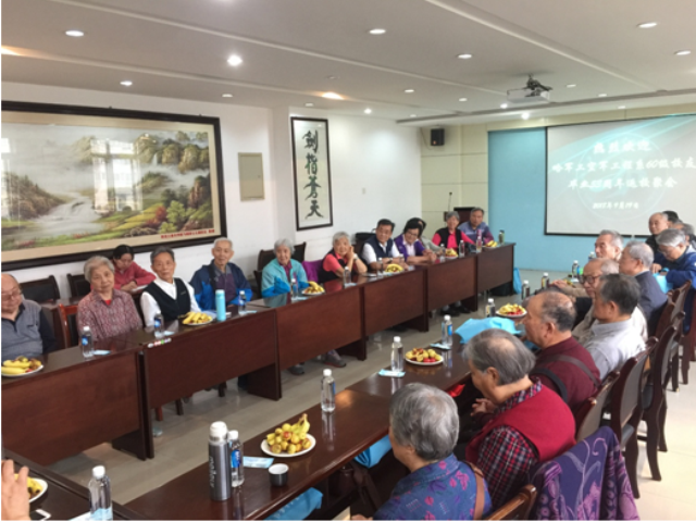9月19日下午,哈军工空军工程系60级校友在beats365官网A706举行毕业53周年聚会。学校校友会副秘书长可方玲副主任、beats365官网党委副书记贾丙雷(主持工作)、党委副书记林楠、60级校友代表及其任课老师代表参加座谈会。会议由60级校友范玉香主持。