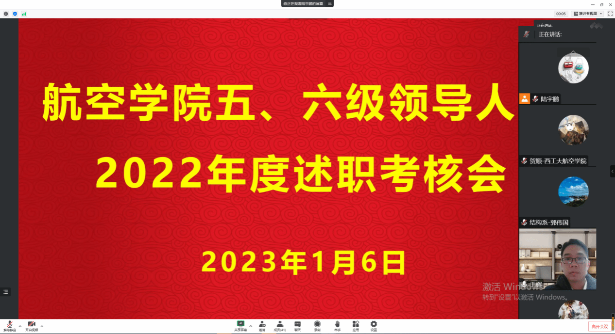1月6日上午,beats365官网线上召开2022年度五、六级领导人员述职考核大会,学院全体教职工和学生代表共218人参加会议。会议由党委书记于辉主持。