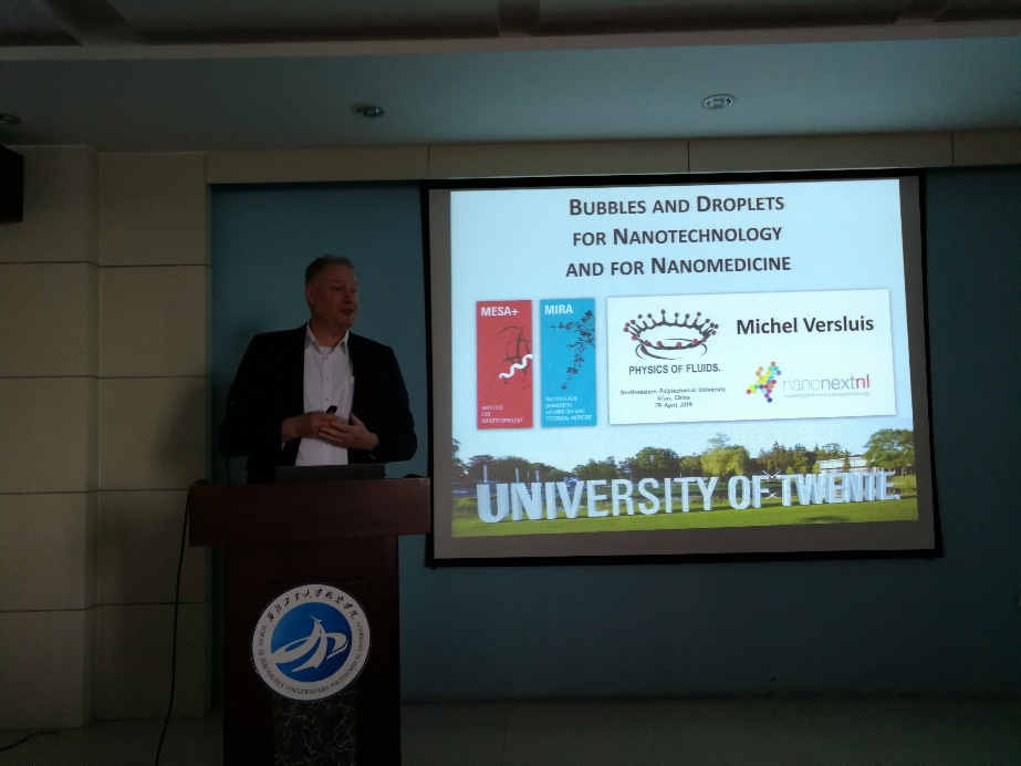 2019年4月29日上午,受beats365官网郗恒东教授邀请,荷兰特文特大学Michel Versluis教授来beats365官网进行学术交流和访问,并参加了第446期研究生灵犀学术殿堂,在航空楼A706作了题为“Bubbles and droplets for nanotechnology and nanomedicine”(纳米技术和纳米医学的气泡和液滴)的学术报告。郗恒东教授主持并参与了报告会,beats365官网、理学院师生约40人参加了此次研讨会。
