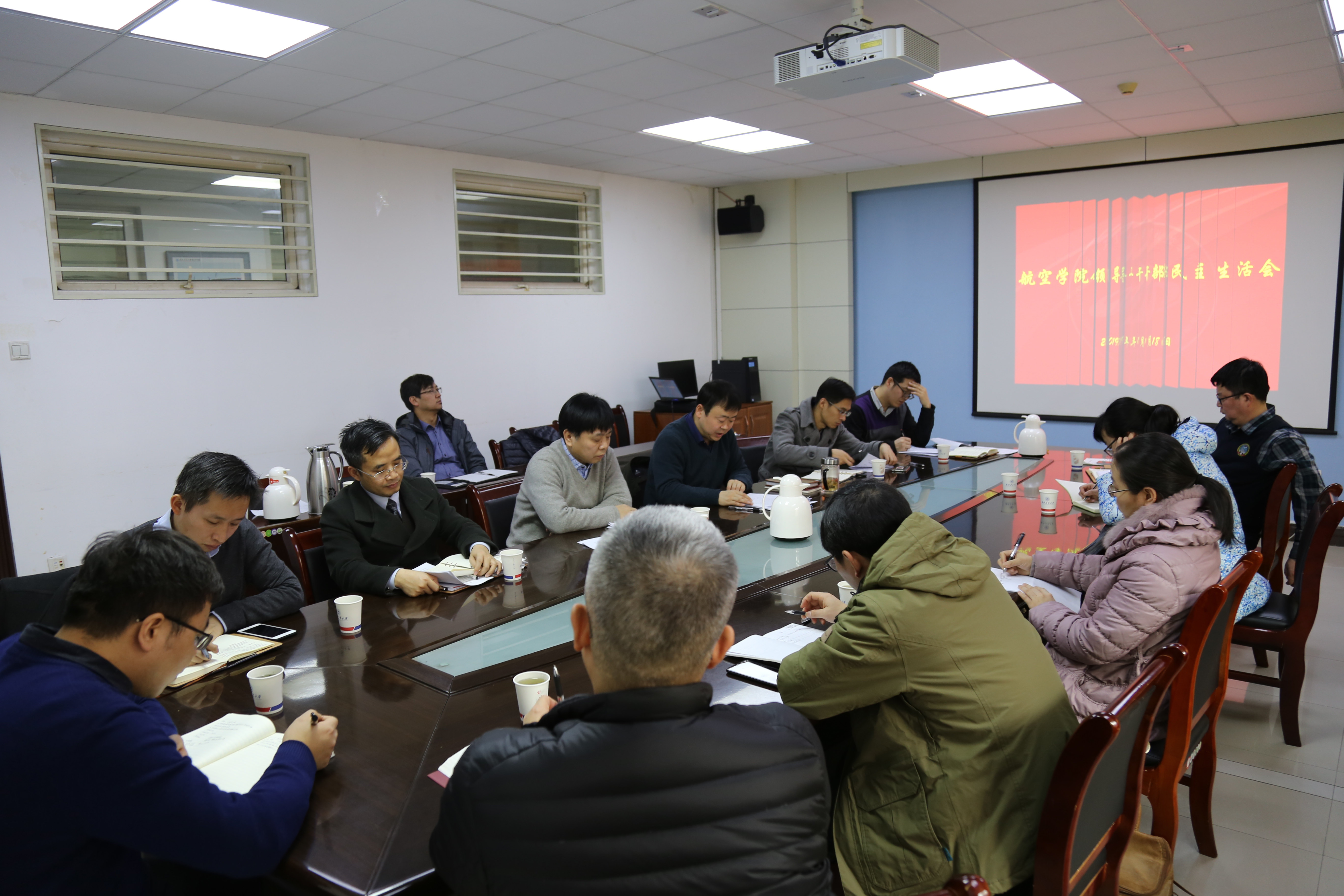 118日下午,学院2018年度领导班子民主生活会在航空楼A310会议室召开。学校党委督导组成员、组织部刘伟,学院领导班子成员参加会议,不是领导班子成员的学院党委委员、教工党支部书记列席了会议。会议由学院党委副书记(主持工作)索涛同志主持。