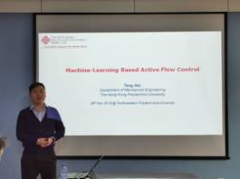 首先,张伟伟老师代表学校对唐辉老师一行人的到来表示热烈欢迎,并向师生简单介绍了唐辉副教授、Richard教授的个人简介。主题报告中,唐辉老师介绍了机器学习在主动流动控制中的一些最新应用,包括用于涡激振动控制的遗传编程方法,用于消除速度亏损和寻找最佳减阻策略的深度强化学习方法。通过这些基于机器学习的主动流动控制研究,发现了一些新的和出乎意料的控制策略。