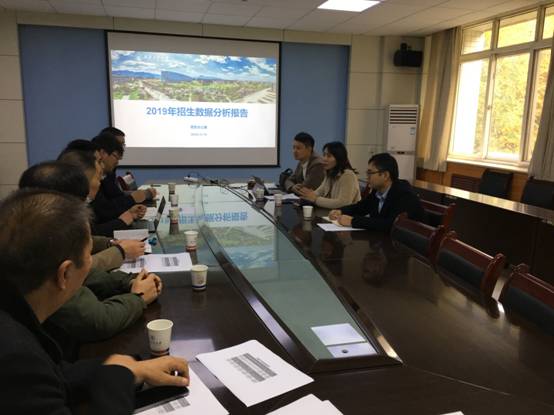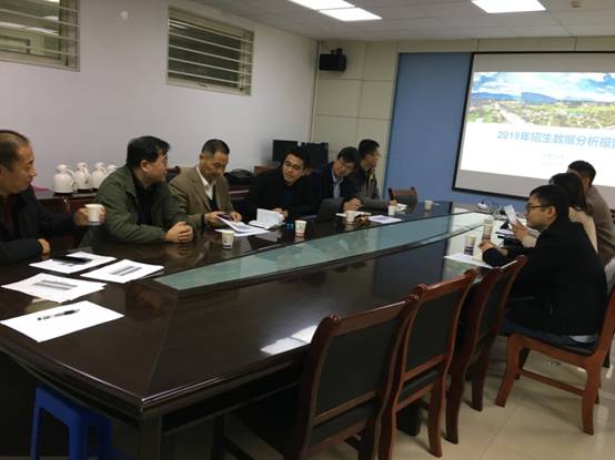 韩寅奔以学校《2019年招生数据分析报告》为切入点,详细解读了2019年我校生源质量整体情况和招生情况,对我院在2019年招生工作中做出的努力和取得的成绩给予了充分肯定,并结合新的招生政策和形势对我院招生工作给予了深入指导。