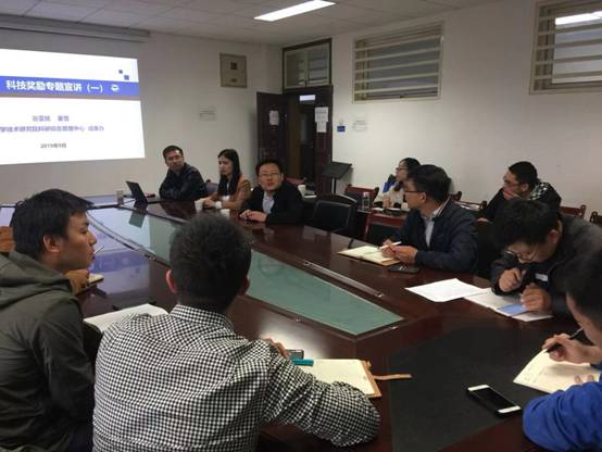 宣讲会上,谷亚旭老师先强调了科研奖励的重要性并介绍了我校科研奖励政策,详细介绍各类科技奖励的奖项设置、申报要求、授奖情况、评审时间安排、提名渠道等;并从多年的工作经验中,凝练出申报材料撰写的体会,强调撰写申报材料要围绕科技成果水平。姜雪老师主要介绍了省奖的情况,详细讲解了推荐书撰写过程中应该注意的重要事项,鼓励老师们确立目标、树立信心,积极申报科研成果奖。听了成果管理办公室老师的介绍后,与会老师申报科研成果奖的热情得到极大的激励和鼓舞,会上积极提问,热切交流,收获满满。