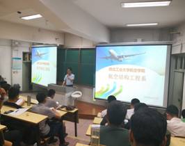 各系教师代表介绍本系本专业的特色、研究生招生情况以及各团队具体信息。设计系韩庆副教授、综控系薛红军副教授、流体系许和勇教授、结构系张超教授、民航系周勇副教授分别进行了宣讲。同学们在期末考试紧张的复习中积极参加本次宣讲,从宣讲当中收获颇丰。