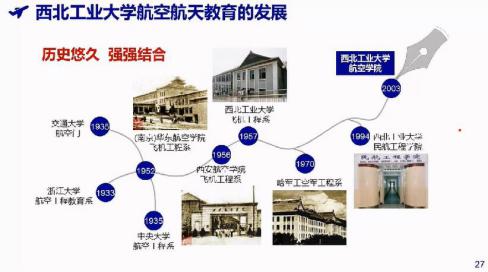 西工大的航空航天教育历史悠久,经历了强强结合的过程,以季文美、黄玉珊、陈士橹等为代表一大批优秀前辈学者为西工大的航空航天研究奠定了深厚基础,造就了一支高水平教学科研队伍,传承发扬了优秀师德师风。在历史发展中,建立了体系完备的高水平研究平台,打造出了高素质拔尖创新人才培养体系。西工大航空航天教育取得的人才培养成效显著,培养出了一大批高水平的各领域人才,被人们总结为“西工大现象”。新时代下,积极推进本科人才培养改革,在人才培养上坚持放眼国际、研育并举。近年来,开展了一系列改革与探索,包括:实施“完全学分制”,推行“本硕博”贯通式培养;注重实践能力锻炼,培养航天开拓引领型人才;产教结合,培养综合性航空领军人才,创新构建硕士试飞员培养模式;面向国家需求,培养高素质拔尖科技创新型人才等,这使得新时代西工大的航空航天教育事业再获进一步的发展。