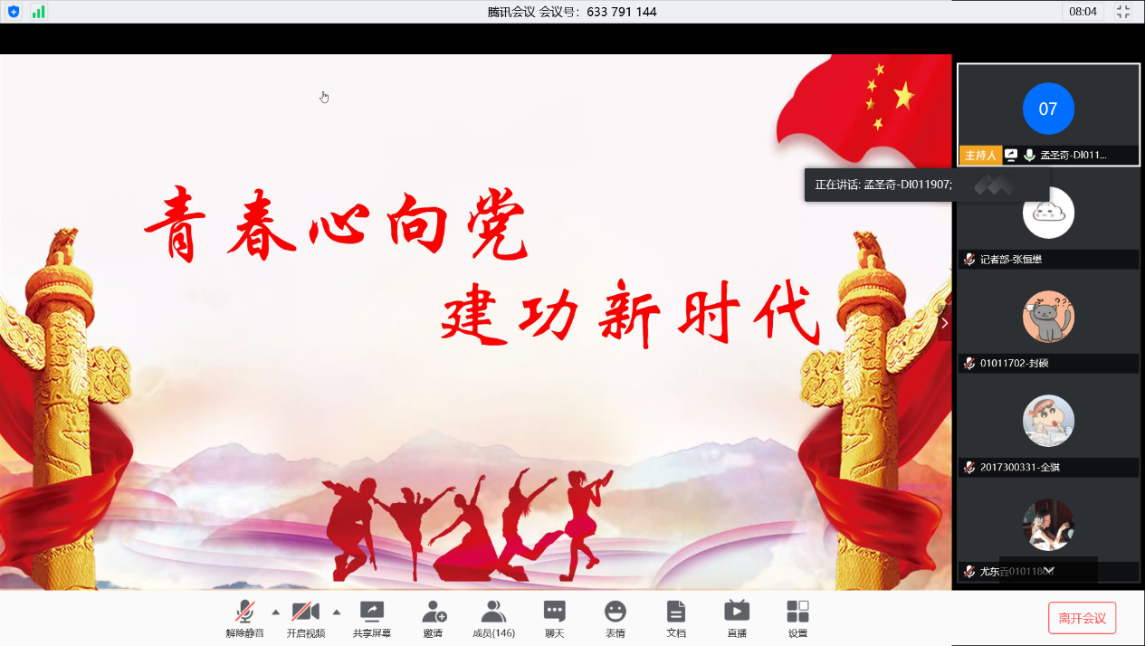 为响应校团委关于进一步开展“青春心向党,建功新时代”主题宣传教育实践活动的号召,弘扬抗疫精神与家国情怀,4月28日19:00,beats365官网通过腾讯会议线上举行了青年榜样宣讲活动,主持人孟圣奇、各宣讲发言人以及beats365官网的同学们参与了本次活动。