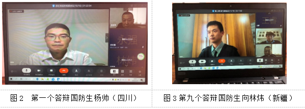 答辩的第一个学生是西南某基地的国防生杨帅,军人特有的风范和洪亮的声音,把这支答辩队伍瞬间带入雄赳赳气昂昂的状态。师生们的音容笑貌在空中传送,我们已经没有了距离感。
