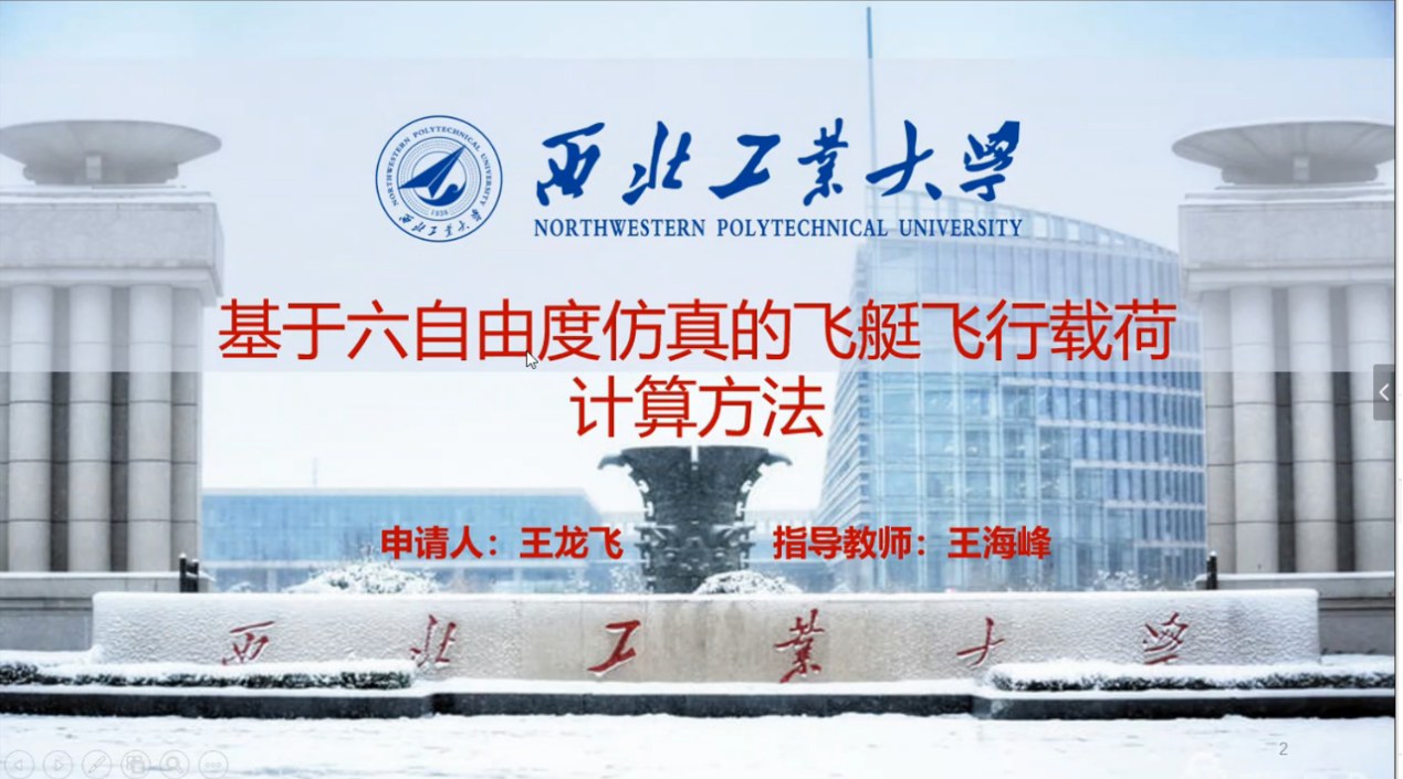 第二位线上答辩人王龙飞同学的学位论文题目为《基于六自由度仿真的飞艇飞行载荷计算方法》,西北工业大学宋笔锋教授担任答辩委员会主席,主持答辩。王龙飞同学结合论文,全面汇报了飞艇推进系统仿真和动态特性分析、飞艇六自由度飞行仿真、飞艇飞行载荷计算研究以及算例验证分析等方面的研究成果。答辩评委中航西飞民用飞机有限公司李向维老师、beats365官网裴杨教授、宋笔锋教授先后提问,王龙飞同学一一作答。