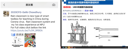 《Basics of CFD》和《湍流理论与湍流模型》是学院周一首先开课的两门研究生专业课程。授课教师许和勇教授是学院研究生在线教学技术支持组长,身先士卒,首先开讲。第一门课程《Basics of CFD》尽管上课学生只有2名在校的外国留学生,但许教授高度重视,同等对待,认真备课,采用“雨课堂+QQ分享屏幕”方式进行线上教学。两名留学生都反映授课讲解清晰,通过手机端雨课堂或观看QQ群分享的屏幕,听课效果良好。Galib Chowdhury同学还将他第一次进行网络听课的体验发布到了朋友圈,并且录制了听课视频,发布到了国际视频网站Youtube,对我校在疫情期间采用雨课堂进行网络教学起到了积极宣传作用。许教授第二门课程《湍流理论与湍流模型》在周一晚上进行,选修的8名同学通过雨课堂和QQ群分享屏幕等方式,从全国各地准时齐聚课堂,全部在线参加了课程学习,效果良好。