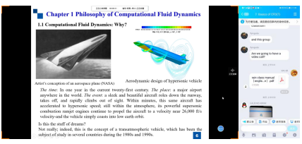 24日上午九点,本学期第一门研究生专业课《Basics of CFD》如期上线开课,该课程为留学生课程。尽管上课学生只有2名外国留学生,但授课教师许和勇教授备课充分,一丝不苟,雨课堂和QQ视频同步使用,保障课程顺利进行,教学效果良好。课堂上同时也有志愿者、学院督导及领导如期加入观摩,对留学生同学上课过程中的工具使用等问题,给予实时的辅助,课程进展顺利。按照学院统一安排,开学前4周,学院将陆续有17门研究生课程在线开设,为了保证教学质量,所有教学老师均自2月初便开始课程准备,积极学习多种网络授课工具。学院成立研究生在线教学技术组,为开课教师提供技术培训,提供试讲体验机会。每一位授课教师,不论年龄高低,态度端正,保持谦卑之心,认真以教师身份和学生身份体验在线授课过程,以求提前暴露问题,做好应对预案,保证课程质量。学院知名教授宋文萍老师身先士卒,不仅认真准备好自己的课,还全程参与为期两天的学院试讲,学习其他教师先进经验,同时组织教学团队和学生多次开展课内试讲试练,提前做好一切准备以迎接同学们的到来。