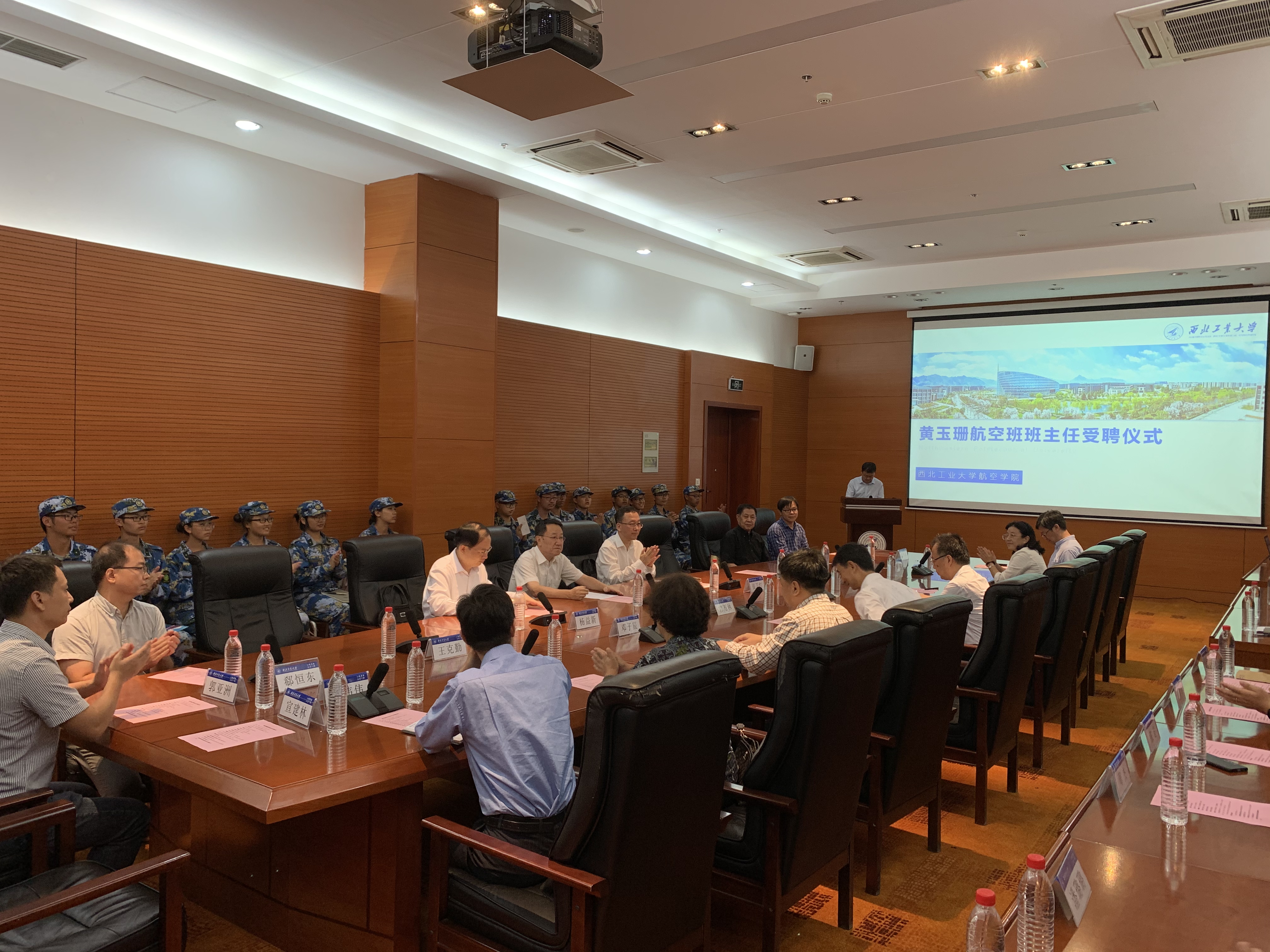 9月10日下午,西北工业大学首届黄玉珊航空班班主任授聘仪式和新生见面会在长安校区启真楼110会议室举行。校党委书记张炜,中国科学院郭万林院士,副校长张卫红、杨益新,党委学工部部长代富平,教务处副处长王克勤,beats365官网院长邓子辰,民航学院院长李玉龙,黄玉珊先生女儿黄其青,校友代表彭亮文,beats365官网其他院领导和优秀青年教师,黄玉珊航空班授课教师代表张莹、潘璐璐、都琳,及首届黄玉珊航空班全体学生出席了此次会议。会议由beats365官网党委副书记(主持工作)索涛主持。