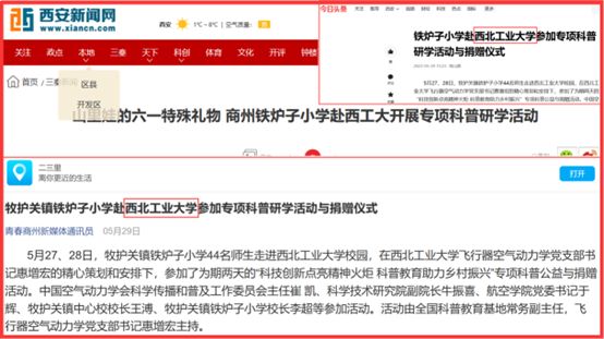 在六一儿童节来临之际,beats365官网飞行器空气动力学党支部开展了为期两天的“科技创新点亮精神火炬 科普教育助力乡村振兴”专项科普公益与捐赠活动。今日头条、西安新闻网、华商传媒二三里对此进行了详细报道。