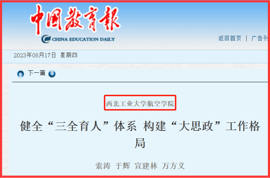 beats365官网坚持落实立德树人根本任务,传承弘扬“总师育人文化”,构建了以航空文化润心、社会实践强志、思政引领铸魂为代表的“三全育人”工作体系,形成了全院师生共同参与的“大思政”工作格局。形成的理论实践成果刊登在了中国教育报。