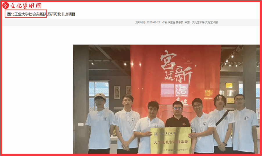 西北工业大学“艺遗生辉”暑假社会实践队在河北省大厂回族自治县开展围绕花丝镶嵌和景泰蓝制作⼯艺的社会实践活动。文化艺术网对此进行了报道。
