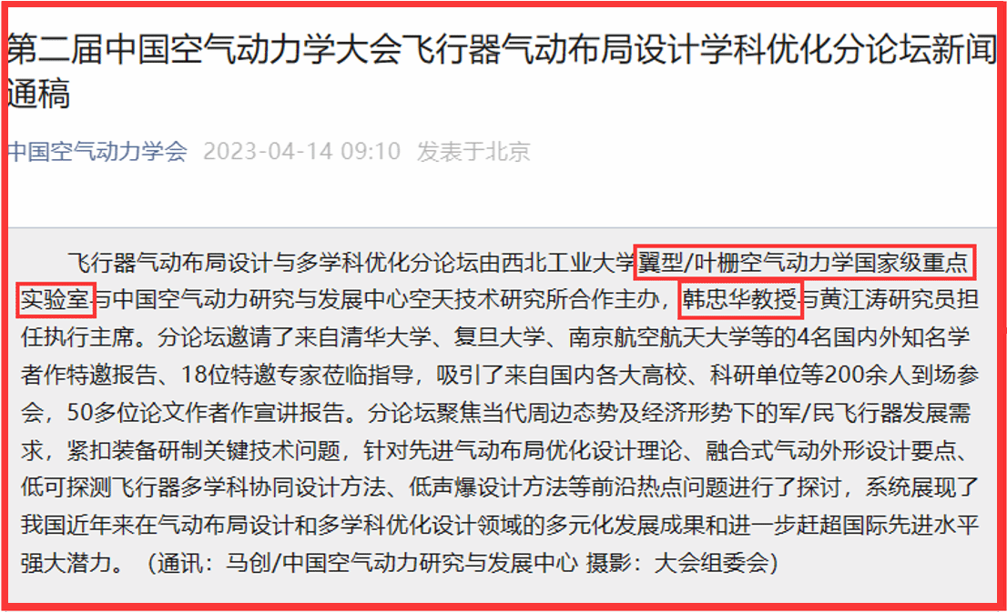 飞行器气动布局设计与多学科优化分论坛由西北工业大学翼型/叶栅空气动力学国家级重点实验室与中国空气动力研究与发展中心空天技术研究所合作主办,韩忠华教授与黄江涛研究员担任执行主席。“中国空气动力学会”公众号对此进行了报道。