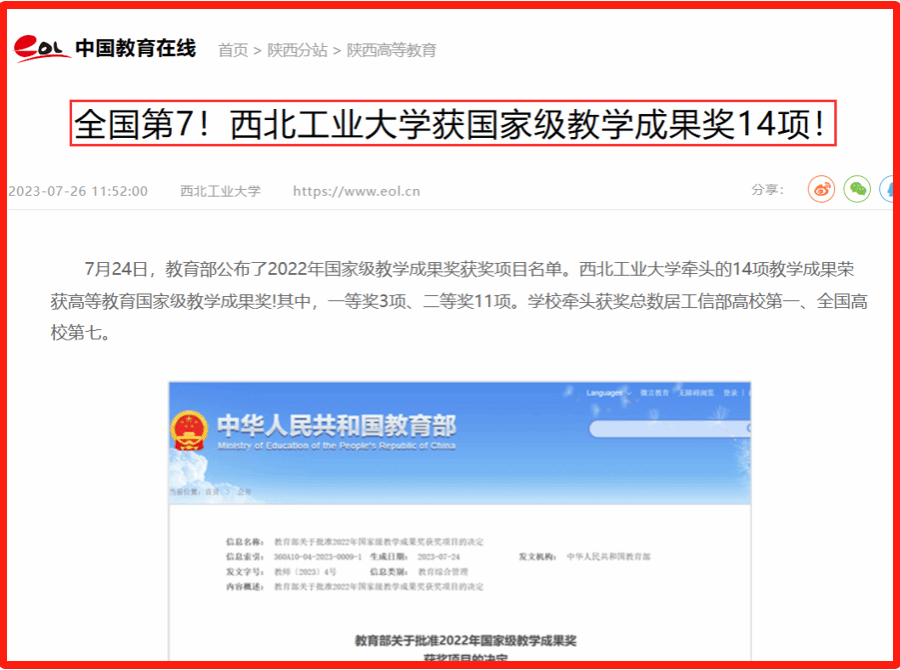 教育部公布的2022年国家级教学成果奖名单中,beats365官网赵美英教授、高正红教授牵头的教学成果分获高等教育国家级教学成果奖一等奖,邓子辰教授牵头的教学成果荣获高等教育国家级教学成果奖二等奖1项。此外,学院郑锡涛、于辉、宣建林、赵超四位老师分别参与的4项教学成果荣获高等教育国家级教学成果奖二等奖。中国教育在线对此进行了报道。