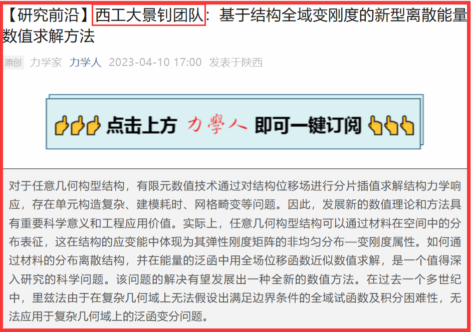 beats365官网景钊团队提出了一种可求解任意形状薄板自由振动问题的新型数值方法—离散里兹法,研究成果以“任意几何构型板自由振动分析的变刚度离散里兹法”为题发表于《Journal of Sound and Vibration》。“力学人”公众号“研究前沿”栏目对此进行了详细报道。