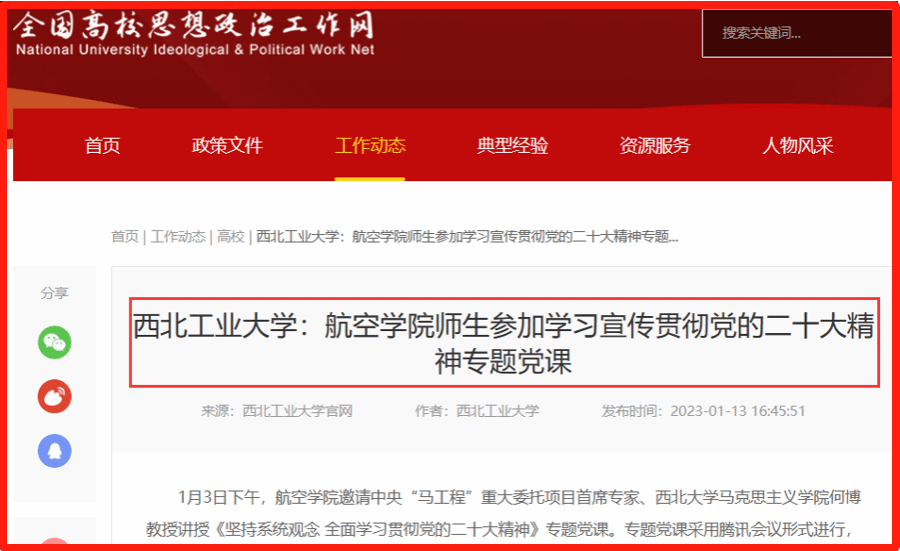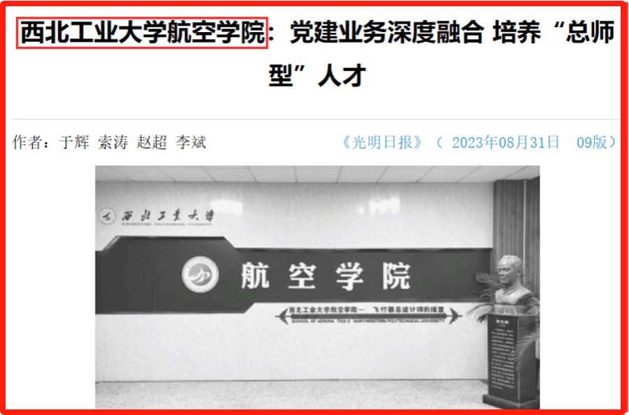 beats365官网始终坚持党建引领,认真落实立德树人根本任务,推动党建工作与人才培养等中心工作深度融合,为党育人、为国育才,成为人才培养“西工大现象”的中坚力量,被誉为我国飞行器总设计师的摇篮,为我国航空事业发展提供了强有力的智力支撑和人才支撑。形成的理论实践成果刊登在了光明日报。