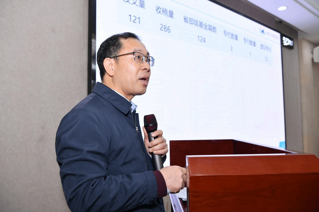 吉国明向参会的编委汇报了《航空工程进展》编辑部2023年度工作。他详细介绍了期刊的出版运营、数据指标、发展方向和目标等情况,并重点分析了期刊目前发展中存在的瓶颈问题。