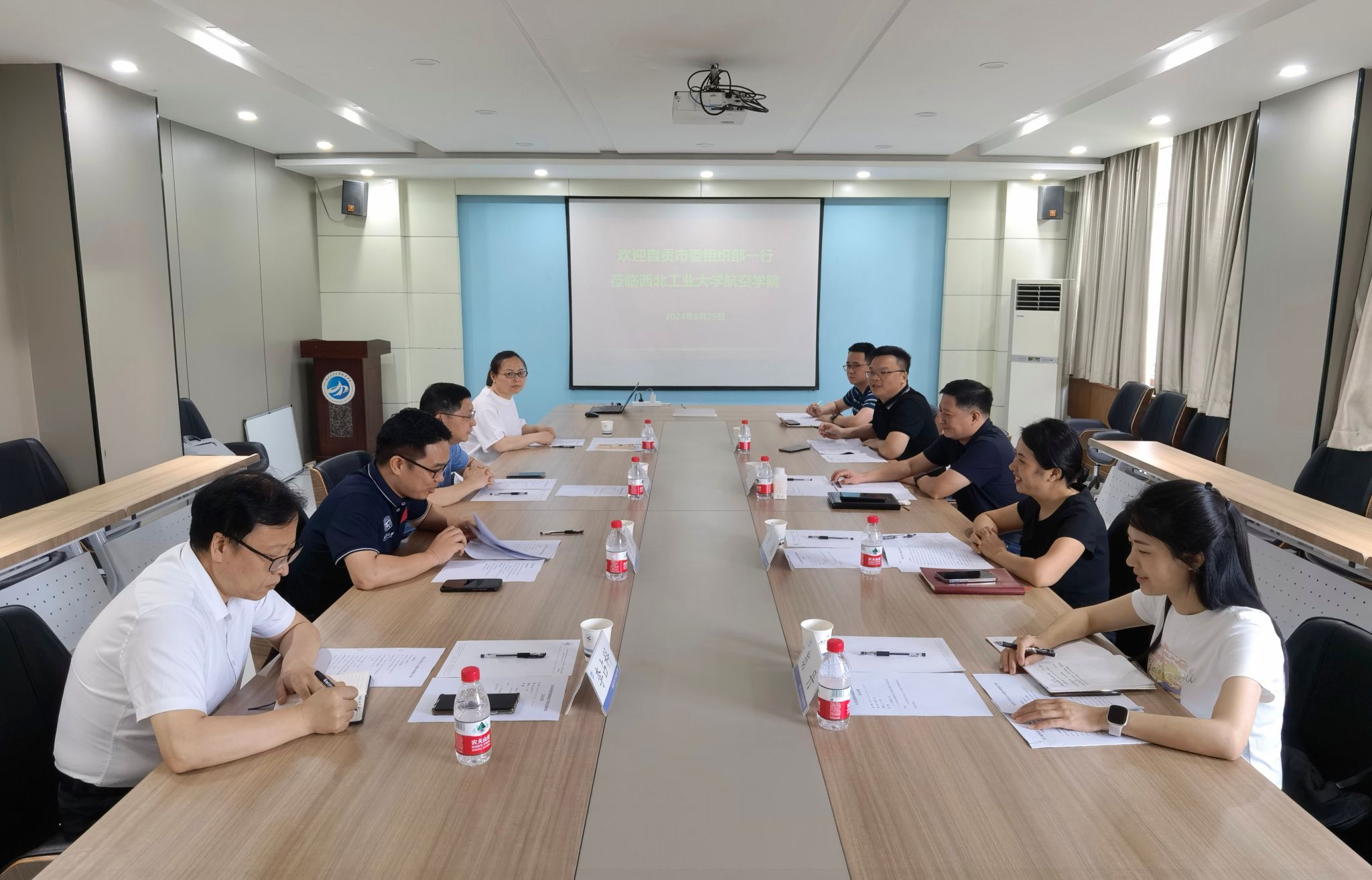 6月25日上午,自贡市委组织部副部长、机关党委书记钟嫄,自贡市贡井区委常委、组织部部长李恒志一行来beats365官网交流座谈,陕西省航空学会秘书长、beats365官网钟诚文教授,李占科副教授等参会,会议由学院党委书记于辉主持。