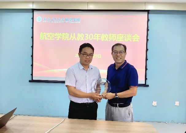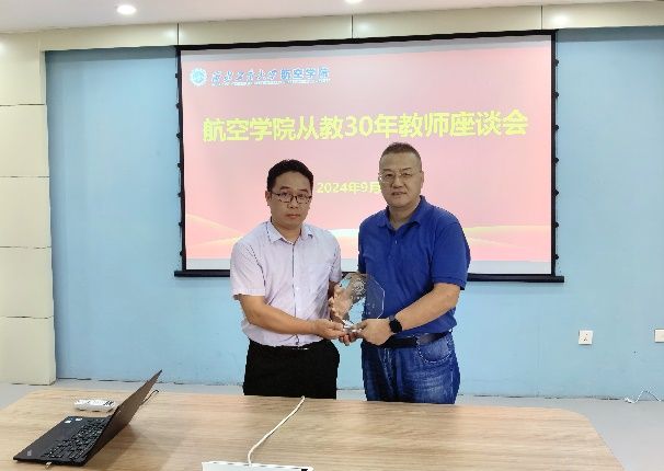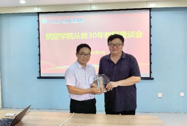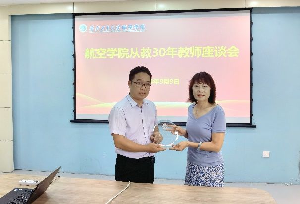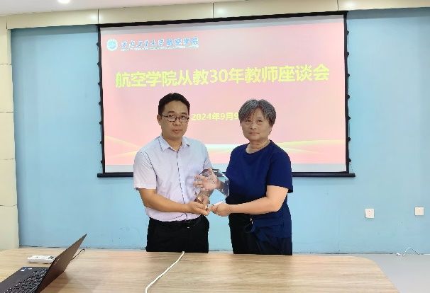 9月9日上午,学院召开从教30年教师座谈交流会。党委书记于辉为从教30年教师颁发纪念杯和鲜花,对老教师们为国家航空事业和学院发展做出的积极贡献表示衷心感谢。会上,老教师们结合个人成长和教学科研经历,与青年教师一同畅谈专业成长的感悟、教育科研的经验。