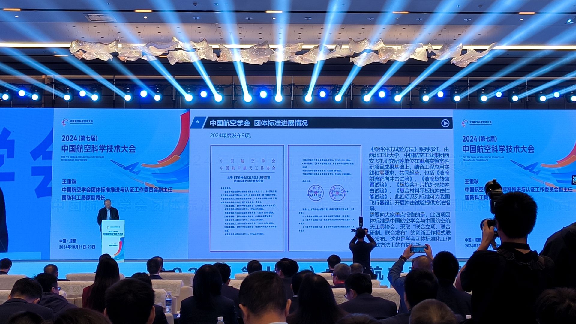 10月22日,由西北工业大学李玉龙教授团队牵头,联合成都飞机设计研究所、航空工业第一飞机设计研究院、成都飞机工业(集团)有限责任公司、航天科技集团703所、四川腾盾科技有限公司、安徽羲禾航空科技有限公司等单位,共同编制的《零件冲击试验方法》系列标准,在第七届中国航空科学技术大会上隆重发布。