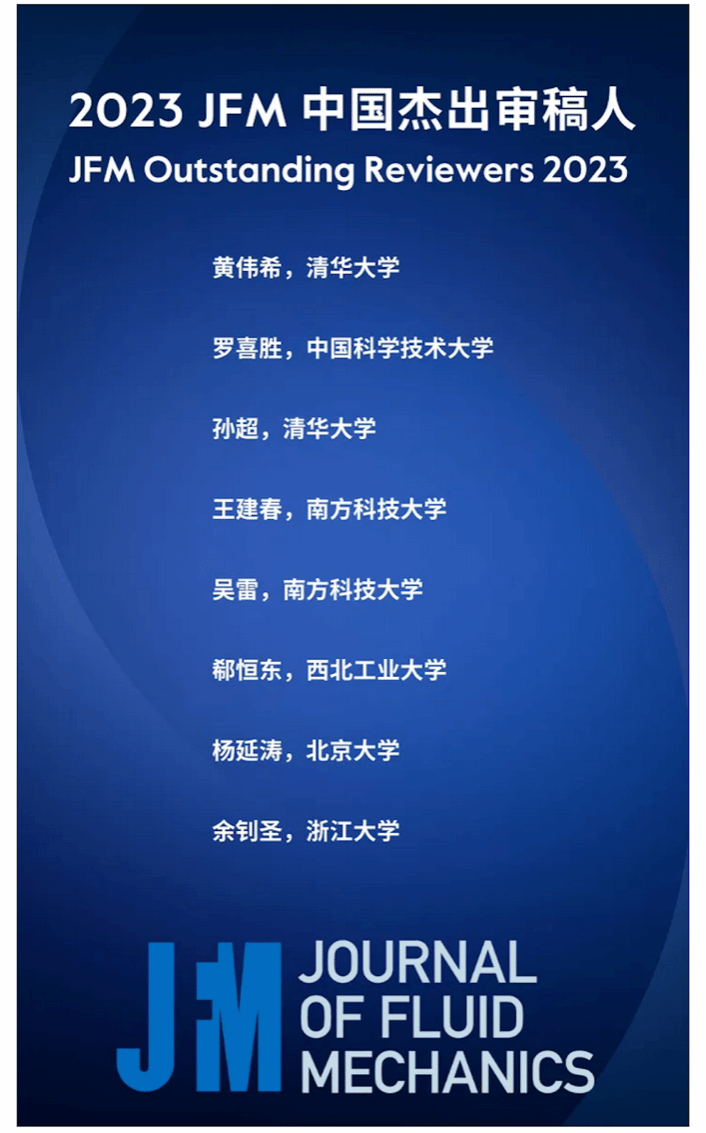 高质量的审稿是剑桥大学出版社期刊Journal of Fluid Mechanics(JFM)的一大出版特色。为表彰期刊审稿人的付出与贡献,JFM将于每年评选出“杰出审稿人”(JFM Outstanding Reviewers),以表彰国际流体力学界专家审稿人在审稿工作中所做出的重要贡献。评选依据包括审稿的及时性和质量、编辑委员会的意见以及委员会的最终评选结果。