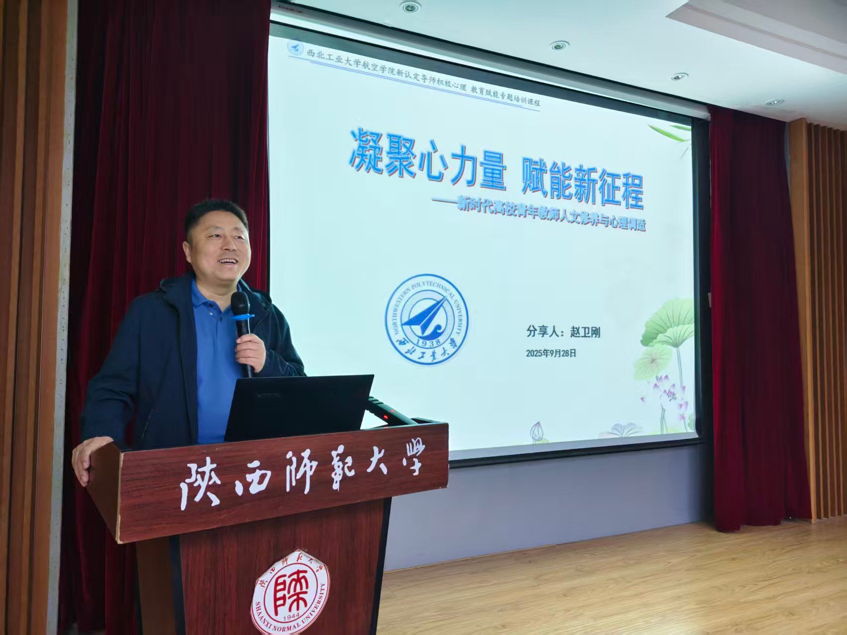 上午,西安交通大学赵卫刚教授应邀作专题讲座《凝聚心力量 赋能新征程——新时代高校青年教师人文修养与心理调适》。赵教授作为高级心理咨询师与积极心理学研究专家,结合丰富的案例,从压力调适、情绪管理和人文修养等角度,深刻阐释了新时代高校青年教师应具备的心态与素养。他强调,导师不仅是学术引路人,更是学生成长的心灵引导师,要以积极心态激发学生内驱力,做到科研育人、身心并重。