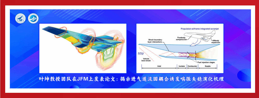叶坤团队长期聚焦高速飞行器极端环境多场耦合方向。近日,团队在高速进气道流固耦合失稳研究方面取得重要突破。相关成果以《The hypersonic inlet buzz evolution under the fluid-structure interaction effect with a flexible plate》为题,发表于流体力学国际顶级期刊《Journal of Fluid Mechanics》。