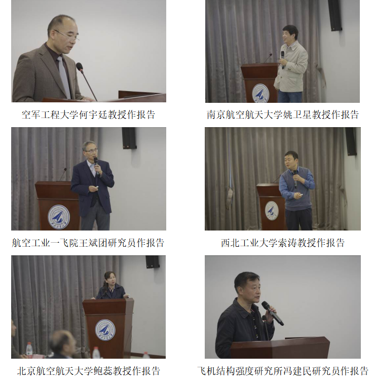 会议共邀请了空军工程大学何宇廷教授、南京航空航天大学姚卫星教授、航空工业一飞院王斌团研究员、西北工业大学索涛教授、北京航空航天大学鲍蕊教授、中国飞机结构强度研究所冯建民研究员、广州民航职业学院黄昌龙教授、空军工程大学景博教授、西北工业大学张超教授(由黄甲副教授代理)、武汉理工大学梁磊教授等10位来自全国高校和研究院所的知名专家围绕飞行器服役(作战)完整性涉及的概念内涵、结构强度、试验评估、优化设计、维修保障、离散元损伤、健康监控等方面做了专题学术报告。在研讨会上,本着“聚焦现实重大需求、共谋自主创新发展”的研讨会宗旨,与会代表进行了热烈、深入地讨论交流,在思想和思想的碰撞中不断迸发出了耀眼的火花。