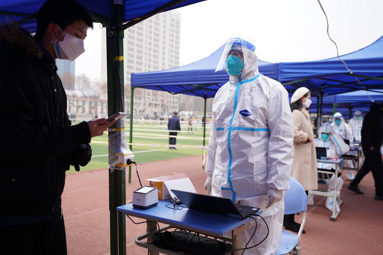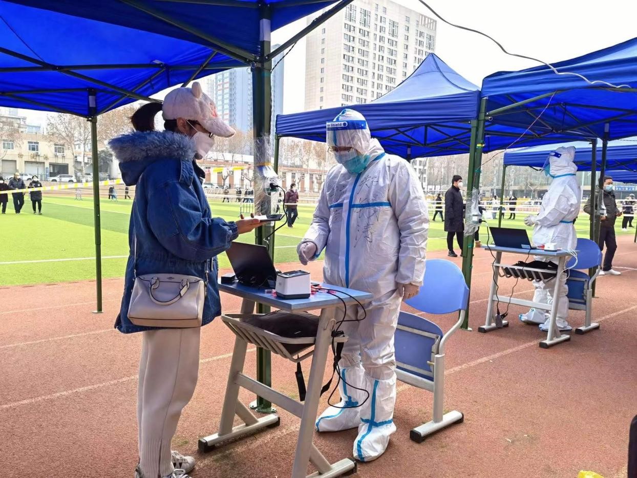 在各校区核酸检测场地,李亚智、郑锡涛、贺尔铭、米百刚、张敏、任晓东等教工志愿者们不顾室外天气寒冷,都以高度责任感、认真负责的态度,仔细核验一码通、发放检测试剂、维持秩序,为医护人员快速采样做好保障。