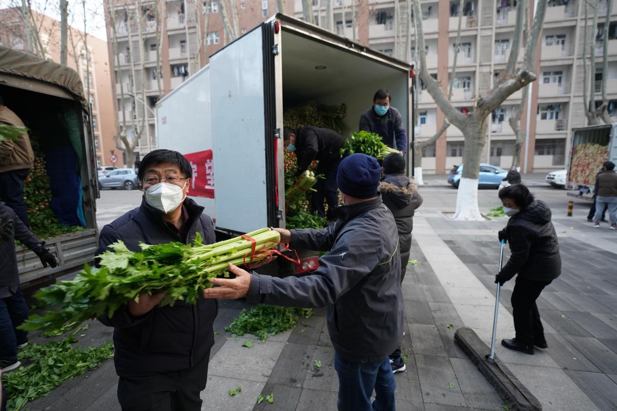 此外,薛璞、郑锡涛、惠增宏等教工志愿者们还参与到疫情下“保供”各项工作中,他们参与到后勤服务便民点的物资分装工作,帮助搬运政府给学校配发的爱心蔬菜,参与校友捐赠物资的搬运等等。